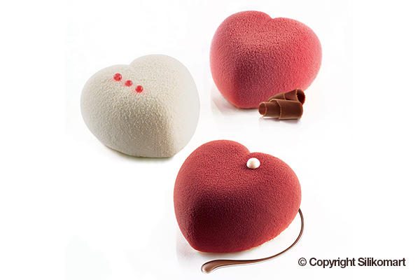 Stampo in silicone per realizzare romantiche monoporzioni a forma di cuore. Ciascuna cavità è dotata di una speciale e innovativa bordatura sulla parte superiore. studiata per conferire alle preparazioni una particolare forma arrontondata alla base. AMORINI si presta a preparazioni dolci e salate. garantendo una resistenza alla temperatura che varia da -60°C a +230°C.