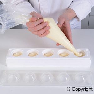 The silicone mould that enables you to prepare egg shaped desserts and elegant monoportions. The mould consists of two parts: the base – Part B – in white silicone, and cover – Part A – transparent, to allow the recognition of the content in the filling phase.